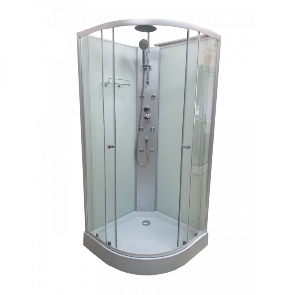 Душовий бокс з напівкруглим низьким піддоном Veronis BKN-1-05 без даху та габаритними розмірами (довжина-ширина-висота) 90x90x225см зроблений для того, щоб перетворити, полегшити та прикрасити інтер'єр Вашої ванної кімнати. Практичність і зручність цього гідробоксу полягає у всіх складових: акриловий піддон з екраном, який посилений плитою дсп і металевим каркасом, якісна та безвідмовна розсувна система, ручний душ на штанзі з регулюванням по висоті, а розжарене скло дверей та задньої стінки при випадковому розбитті. дрібні безпечні уламки не поранивши Вас. Душовий бокс виготовлений на сучасному обладнанні з екологічно чистих матеріалів. Душовий бокс VERONIS - це ідеальне поєднання бездоганної якості, зручності та практичності за прийнятною ціною.
