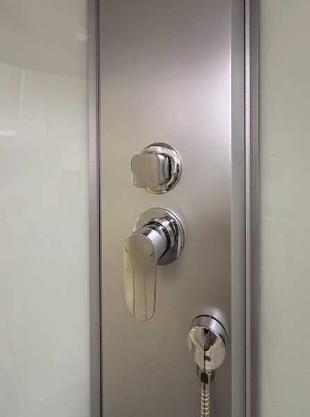 піддон, розсувні двері, бічні передні і задні стінки, ручний душ, металеві ручки, поличка, профіль, дах з верхнім душем