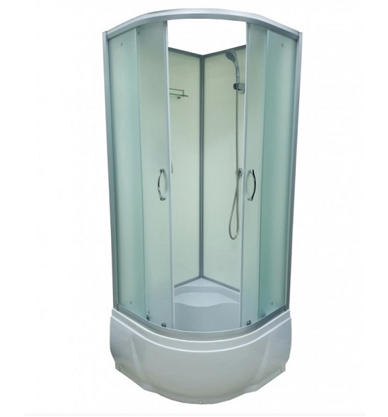 Комплектація: низький акриловий піддон, розсувні двері, бічні передні і задні стінки, ручний душ, металеві ручки, поличка, матовий профіль
