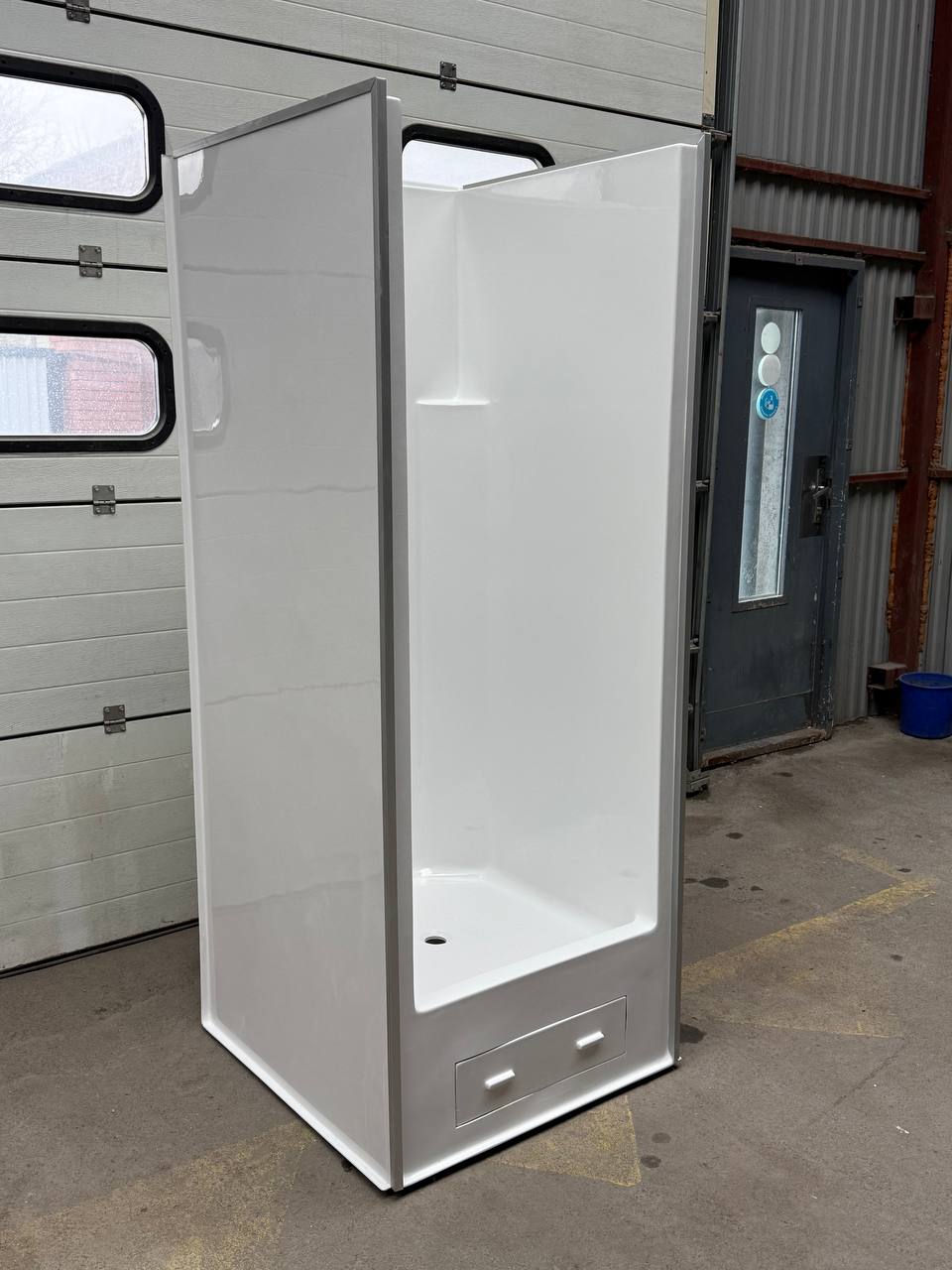 Душевая кабина из литого акрила Redoks San 95×95см.Цельнолитая душевая кабина из акрила 950х950х2050 – хорошее решение для быстрого монтажа в ванной комнате без лишних затрат на отделку и ремонт.Подойдет как для жилых помещений, так и для коммерческих санитарных комнат.Душевая кабина из акрила Redokss San – идеальное решение для дачных домиков, модульных сооружений, мобильных жилых блоков и передвижных санитарных комнат.Конструкция производится из полимерных материалов высокого качества с внешним покрытием из санитарного акрила (гелькоута). Это обеспечивает долговечность,устойчивость к влаге, бытовой химии и сохранение идеального вида даже после продолжительного использования.Цельнолитая конструкция сочетает в себе душевой поддон и стенки, что делает модуль герметичным, крепким и готовым к монтажу без дополнительных отделочных работ.Особенно хорошо подходит для применения в сфере строительства, временного или сезонного проживания, где важна скорость установки, надежность и экономия бюджета.Преимущества душевой кабины Redokss San:???? Цельная герметичная конструкция???? Не впитывает влагу, не боится мороза???? Подходит для использования на улице???? Высокая прочность и износостойкость???? Простой и быстрый монтаж???? Экономия на отделке (не требуется плитки, гидроизоляции и т.п.)???? Варианты монтажа боковых нижних экранов – слева, справа или по бокамЭто практичное, долговечное и выгодное решение для любых условий эксплуатации.ВНИМАНИЕ!!!! В комплект душевого модуля не входят боковые нижние экраны. Под заказ!Характеристики:Материал: Акрил высокого качестваЦвет: БелыйГабариты:Длина: 95см.Глубина: 95см.Высота: 205см.Цвет может любой из палитры RAL — под заказ.
