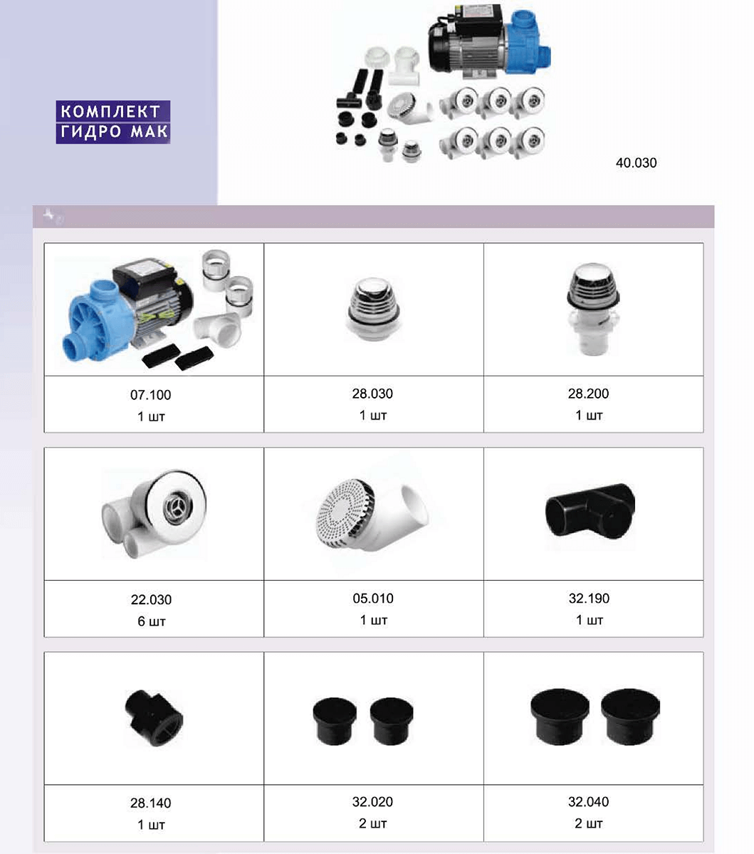 Назначение комплекты гидромассажа