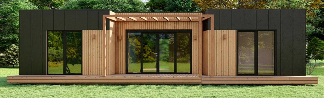 - Современный дизайн: лаконичная архитектура с минимальным уклоном крыши подходит как для дачного участка, так и для постоянного проживания. Дом гармонично вписывается в разнообразные ландшафты и сочетается с другими постройками.