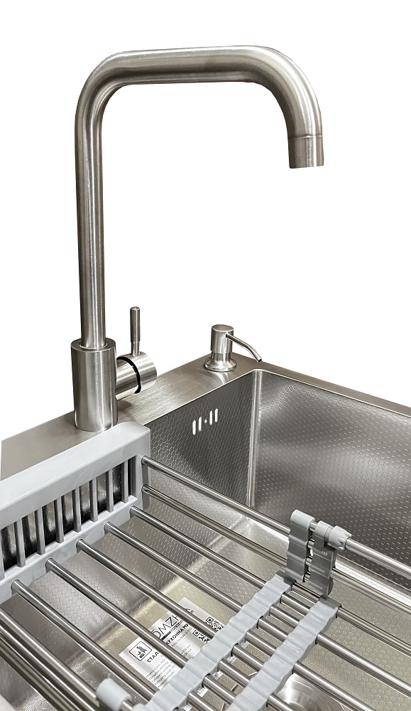 Комплектація: кухонна мийка, сифон, армованний гофро-шланг, корзина з нержавіючої сталі та змішувач Romzha Marian U