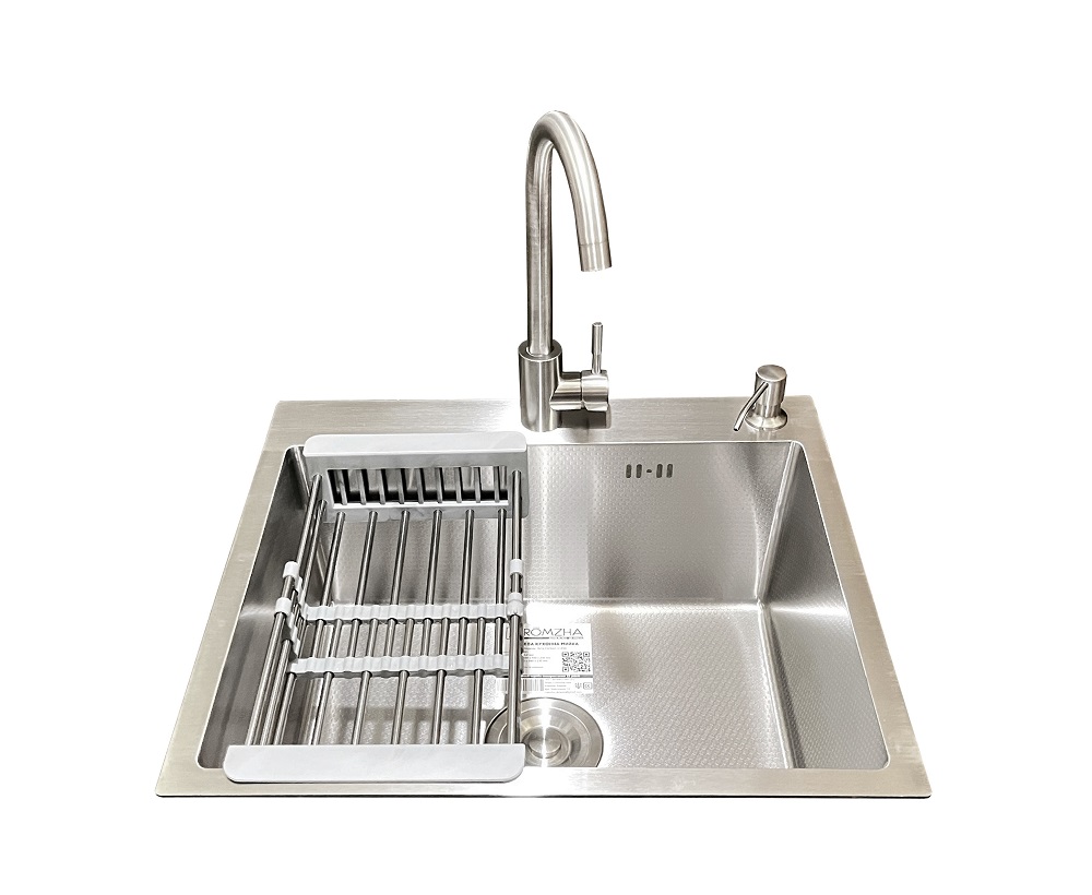 Комплектація: кухонна мийка, сифон, армованний гофро-шланг, корзина з нержавіючої сталі та змішувач Marian J