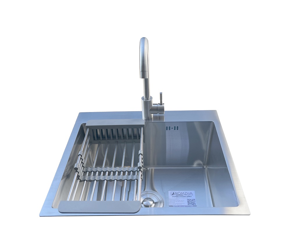 Комплектація: кухонна мийка, сифон, армованний гофро-шланг, корзина з нержавіючої сталі та змішувач Marian J