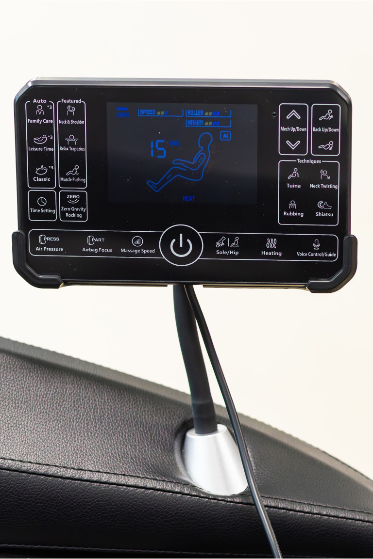 Кресло оборудовано системой массажных механизмов S-Track – это система направляющих, по которым двигаются массажные ролики внутри кресла.