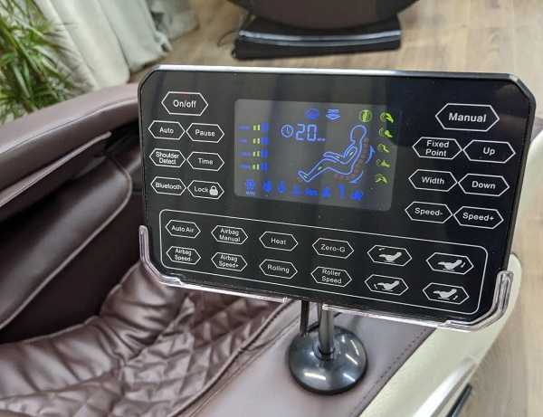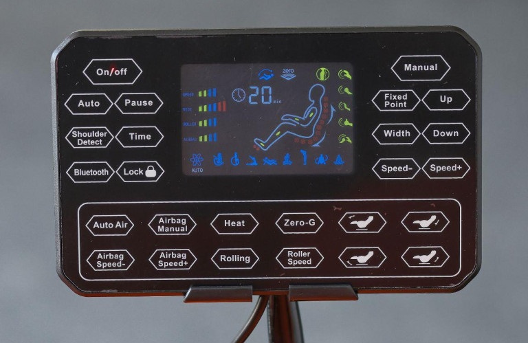 - SL-образный массажный механизм, выполняет массаж от воротниковой зоны до бедренной части. Установлена функция настройки режимов ширины каретки-возможна установка трех размеров массажной каретки.