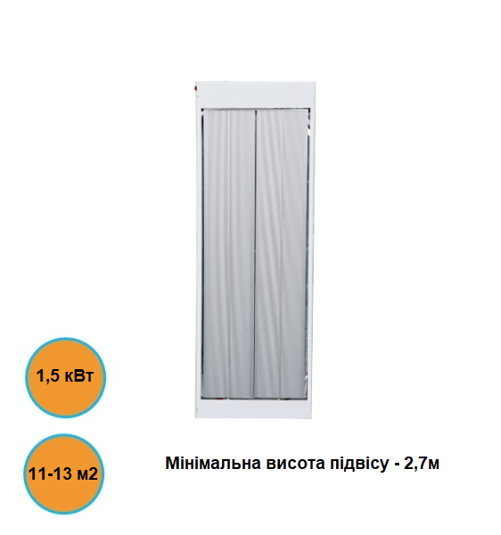 Електричний обігрівач стельовий ЕМТП 1500/220 Інфрачервоні обігрівачі - нові високотехнологічні обігрівачі, які працюють за принципом сонячного випромінювання. Як і сонце, інфрачервоні обігрівачі нагрівають не повітря, а самі предмети, які вже потім нагрівають навколишній простір. Технічні характеристики: Номінальна потужність, Вт / год - 1500. Номінальний струм, А - 6,8. Напруга мережі, В - 210 240. Габаритні розміри, LxHxB, мм - 1040х290х40 Вага, кг - 9. Мінімальна висота підвісу, м. - 2,5. Рекомендована площа обігріву, м2 - 10-12.
