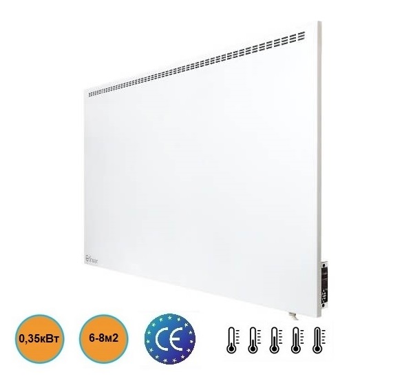 Особливостіметалева передня панель; з електронним термостатом; без кнопки вкл/вимк; товщина обігрівача – 1,5 см; без додаткової панелі з нагрівальним елементом для конвективного обігріву.