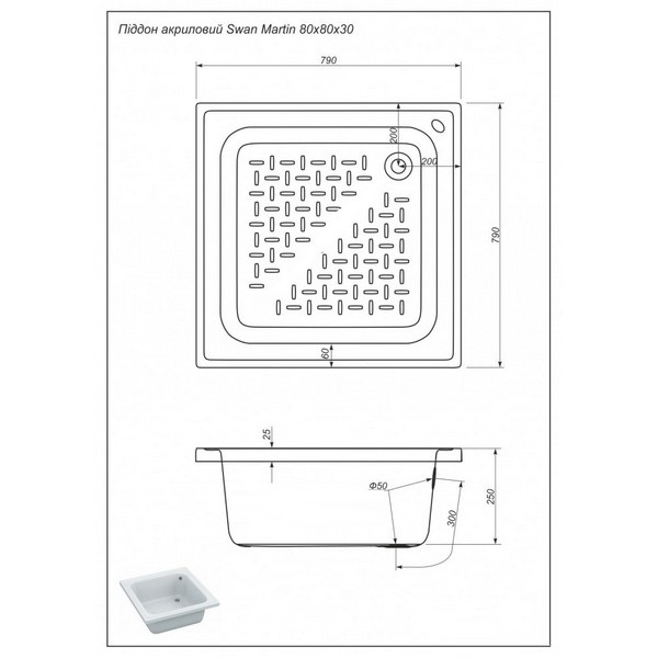 Душовий акриловий піддон MARTIN від української компанії SWAN виготовлений з високоякісного рідкого литтєвого акрилу італійської компанії ItalBeit SRL із застосуванням інноваційного методу формування, який застосовується при виробництві корпусів катерів і яхт преміум-класу. Товщина стінки виробу становить 6-7 мм, з них - товщина акрилового кулі - 1-1,5 мм, товщина армуючого шару - 5-6 мм. Зовнішній силовий шар піддону армований скловолокном від українського виробництва з застосуванням безпечного для людини і навколишнього середовища затверджувача. Дно піддону посилено плитою ДСП з великою кількість ребер жорсткості. Безпека підтверджується висновком санітарно - епідеміологічної експертизи № 05.03.02-04 / 42095.