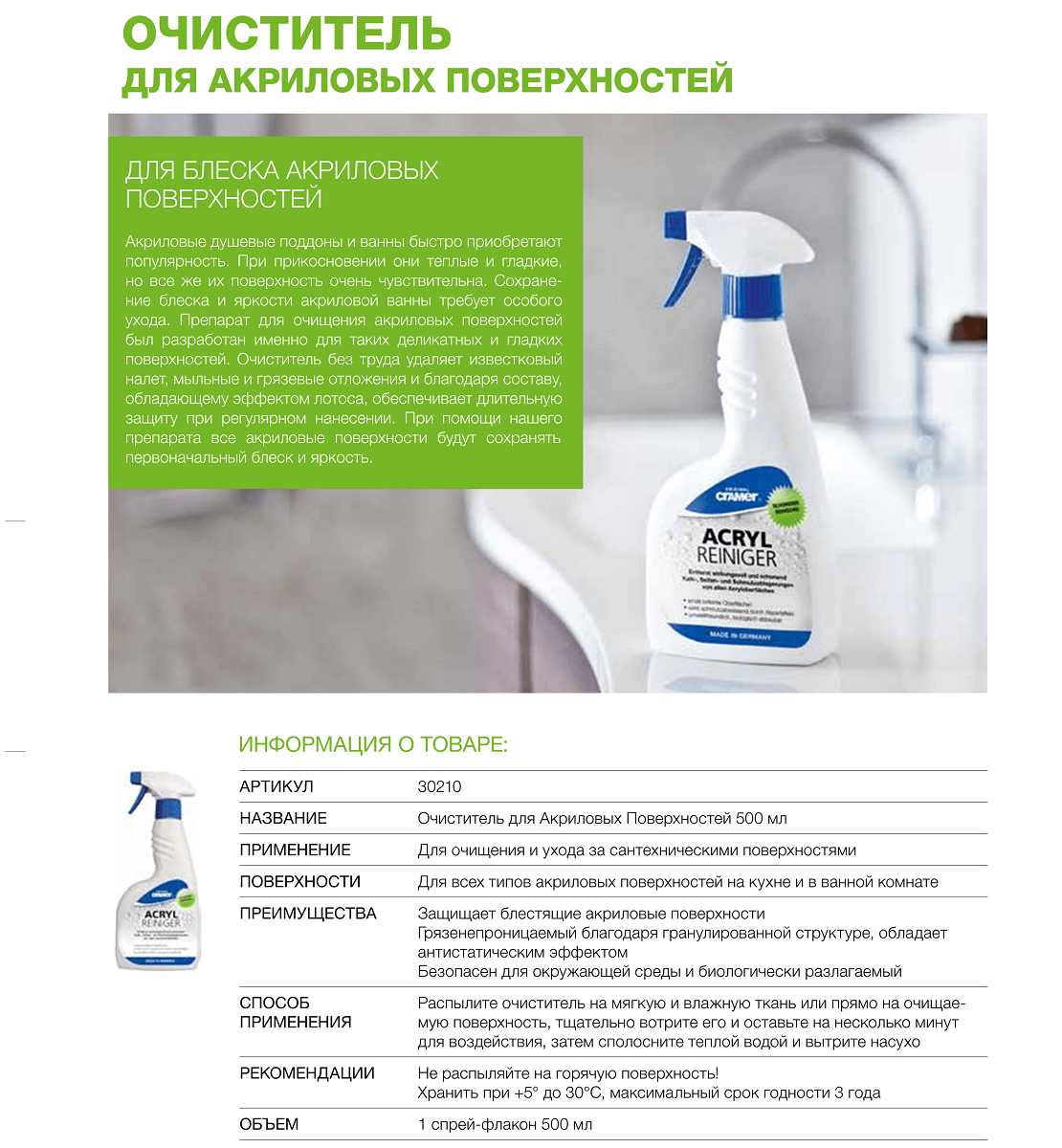 -Для всіх типів акрилових поверхонь на кухні та у ванній кімнаті