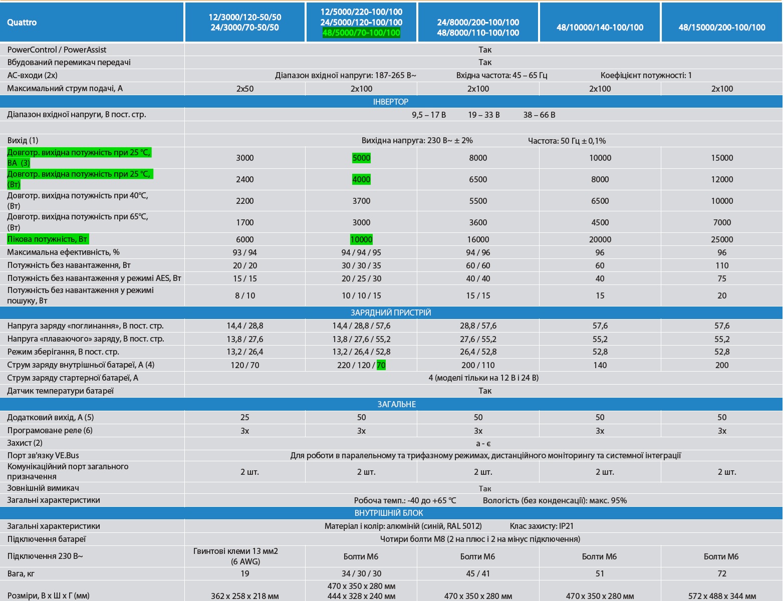 Ключові переваги інвертора Quattro 48/8000/110-100/100