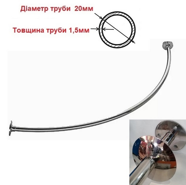 Карниз для вашої ванни або піддону буде виконаний з якісного нержавіючого металу діаметром труби 20 мм (товщина стінок не менше 1,5 мм) Сталь 201.