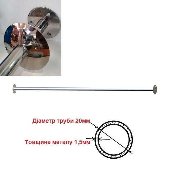 Карниз для вашої ванни або піддону буде виконаний з якісного нержавіючого металу діаметром труби 20 мм (товщина стінок не менше 1,5 мм) Сталь 201.